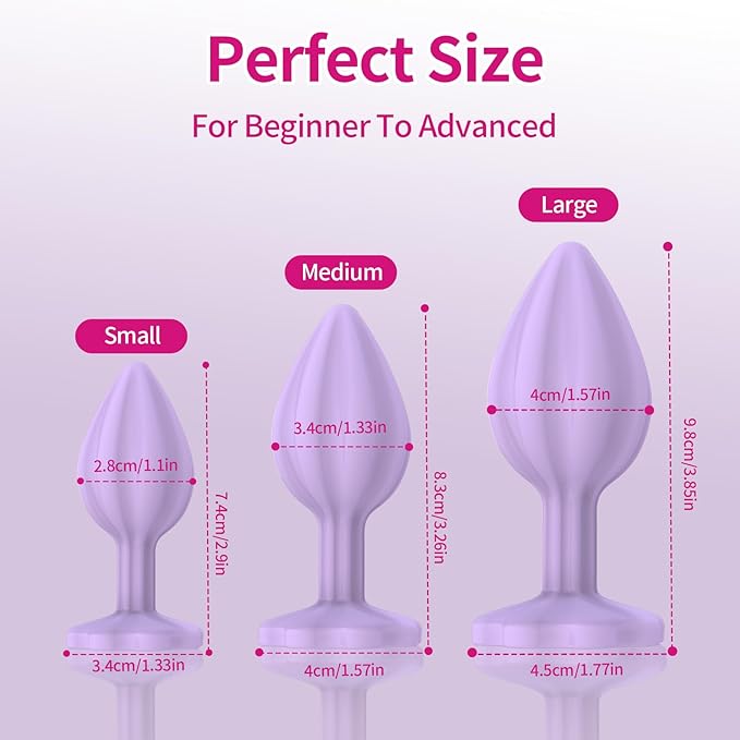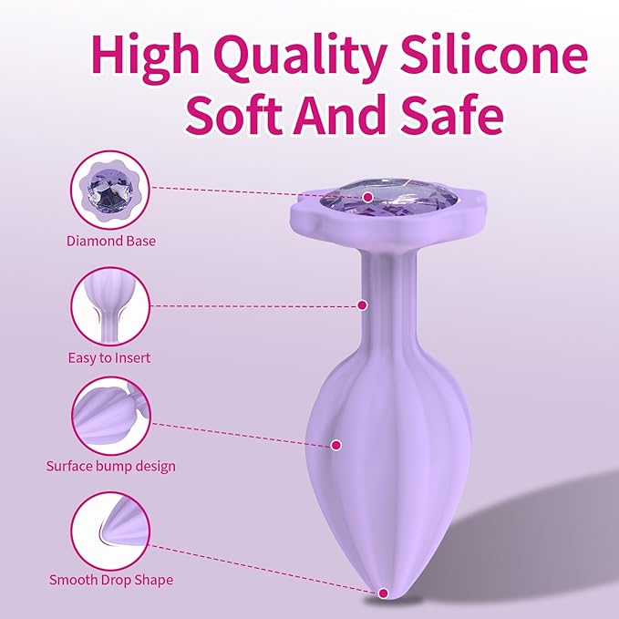 - High – Grade Silicone – Anal Plug Training Kit uses 100% Brand New Smooth Made of high-quality medical grade silico and designed for the comfortable fit for long-term wear, silicone butt plugs are with purple jewelry, Well-made jewellery decoration, makes your anal sex toy elegant. Anal plugs add a fun kink to your sex life.